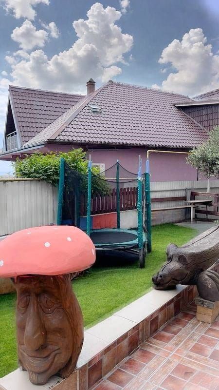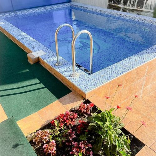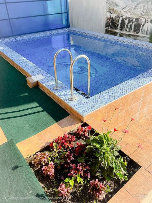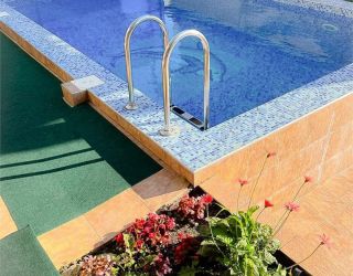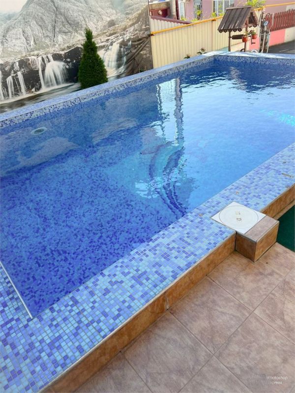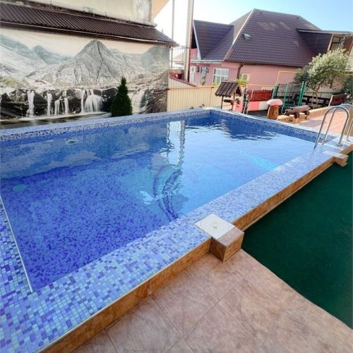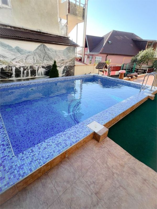 На территории гостевого дома оборудован открытый бассейн с пресной водой и террасой для загара, детская площадка, зона отдыха.