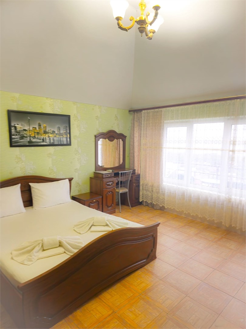 | Семейный 4-местный 2-комнатный | кв.м. | 4 чел. | Мебель (диван раскладной, зеркало, кресло-кровать, кровать двуспальная, прикроватные тумбочки, столи... | |